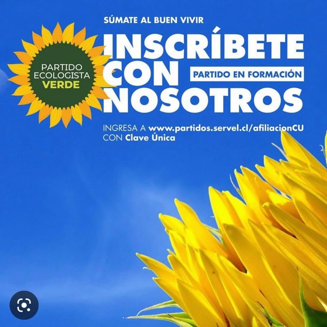 Únete al Partido Ecologista Verde y sé parte de la construcción de un Chile más justo, sustentable y democrático. Tu inscripción fortalece la emergencia climática como prioridad política y abre camino a un proyecto basado en la justicia ambiental, la democracia participativa y el buen vivir. Afíliate fácilmente con tu Clave Única a través del portal del SERVEL.